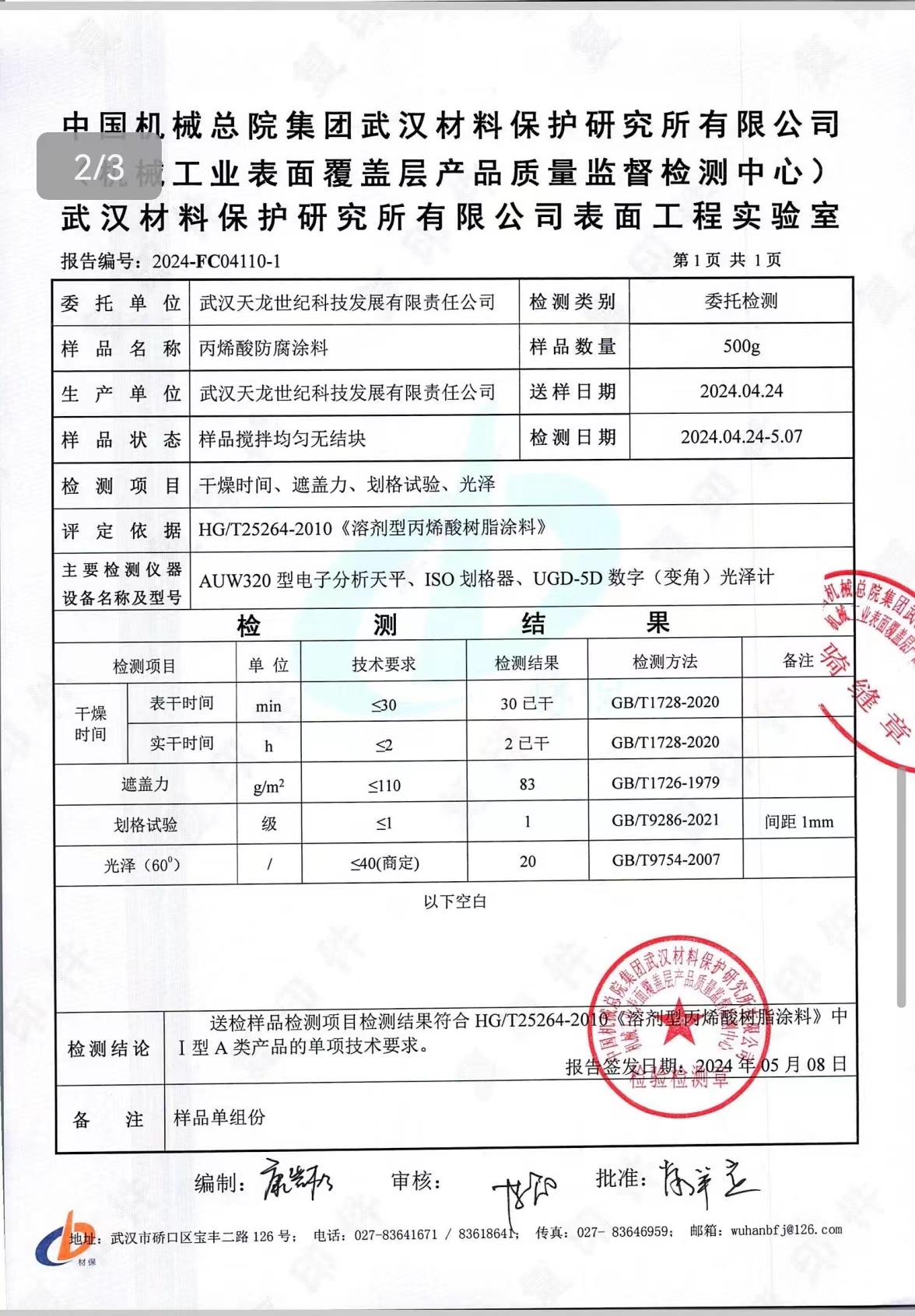 武汉天龙世纪科技发展有限责任公司主营: (环氧/氯化橡胶/高氯化/丙烯酸/有机无机耐温涂料/地坪涂料/墙面涂料等)